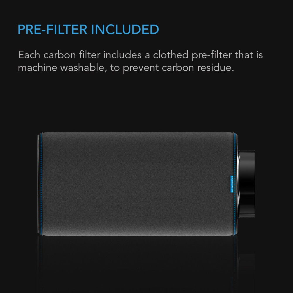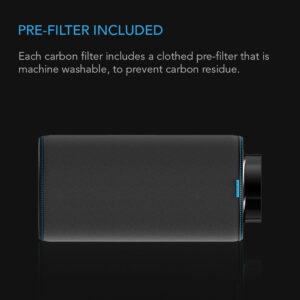 The high-airflow duct filter uses activated carbon to eliminate odors and chemicals. It is popular for hydroponics, grow rooms, kitchens, smoking areas, and other ventilation projects. The filter features a premium-grade Australian Virgin charcoal bed. It can be used with an inline duct fan to act as both an intake and an exhaust configuration. The heavy-duty construction contains stainless steel flanges and dual-sided aluminum mesh. The flanges can also be reversed to prolong the life of the filter. It includes a machine-washable pre-filter cloth to prevent carbon residue.