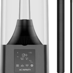 A next-gen 4.5L humidifier designed with smart controls and targeted vapor delivery to obtain ideal humidity levels for successful plant growth. Its body is specially sealed for enhanced water resistance, ensuring no water tank leakage to extend and preserve its long operational lifespan. The controller features onboard humidity and VPD triggering, which utilizes a corded sensor probe for accurate readings, and timer programming. Once activated, the innovative EC ultrasonic vaporizer digitally pulses water to distribute moisture throughout your growing space. This degree of control and smart programming will allow you to fine-tune your climate to facilitate healthy nutrient uptake. This product is a part of the UIS™ platform of growing devices and smart controllers, designed to unite with the AC Infinity app over WiFi to achieve your ideal environment.