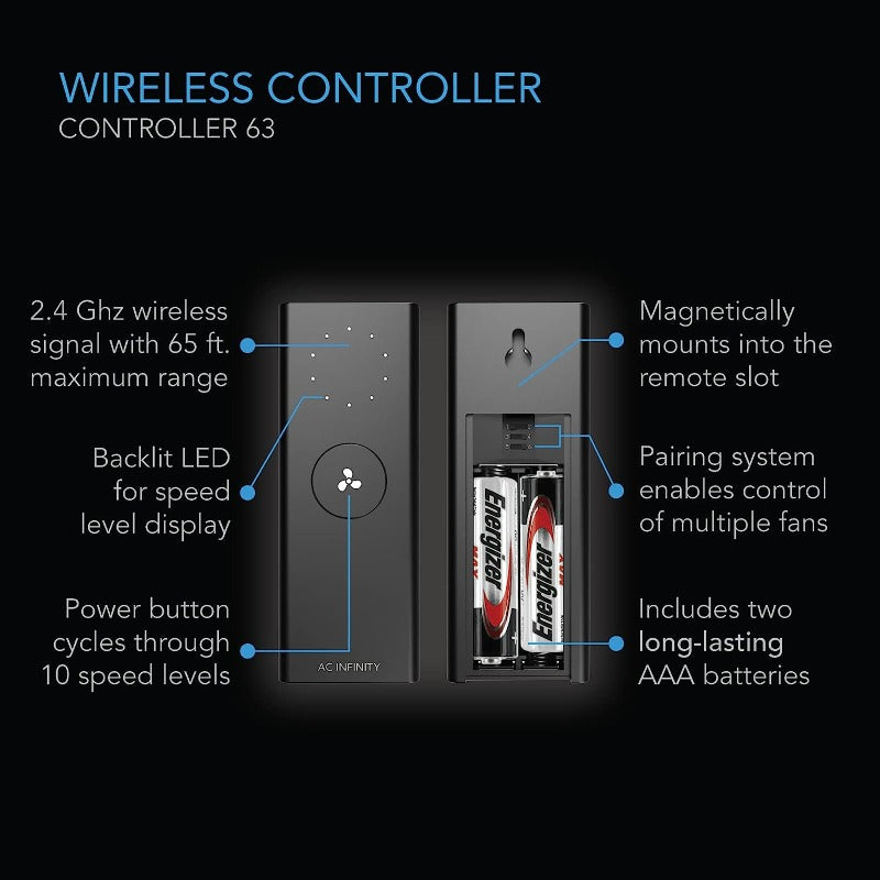 Included 10-speed controller is wireless, giving you remote control over a full range of fan speeds from silent, ultra-gentle breezes to high-velocity airflow.