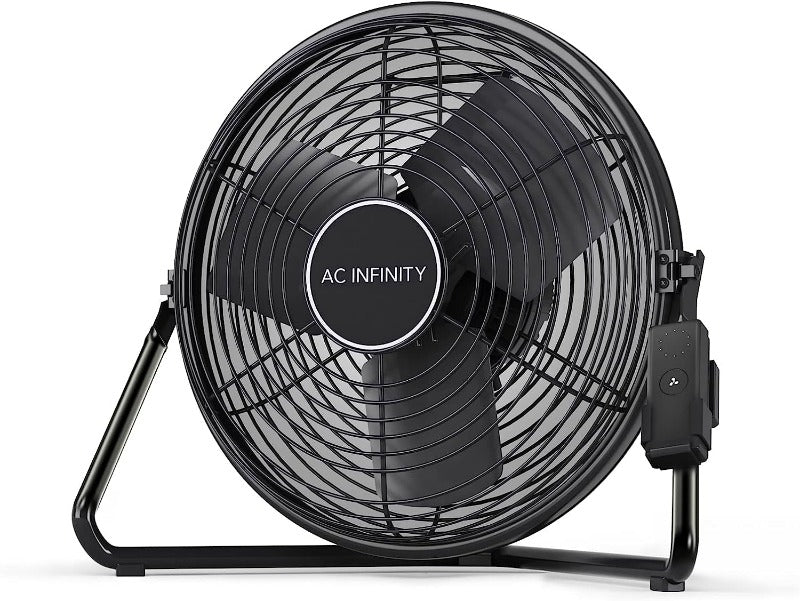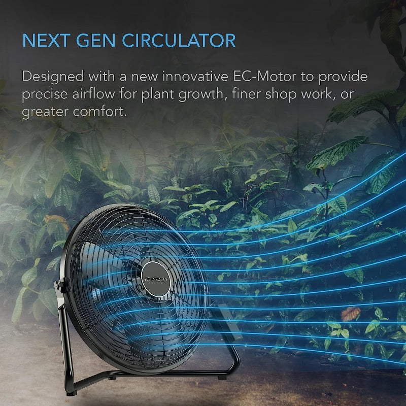 This Premium quality floor wall fan is designed to provide precise control of an environment’s air circulation in applications like plant growing, finer shop work, or tailored personal comfort. Utilizes a cutting-edge EC motor with PWM control to access a full range of fan speeds from silent, ultra-gentle breezes to high-velocity airflow. Includes a 10-speed wireless remote with batteries included. The unit can be manually adjusted with a 360-degree tilt to direct airflow and features heavy-duty IP-44-rated construction for harsher environments. Includes hardware for both floor standing and wall mounting and can be powered through a standard outlet with its 12-foot power plug cord.