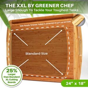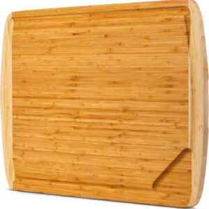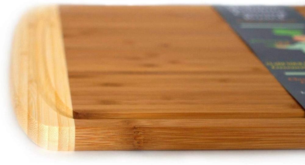 - KNIFE FRIENDLY: This Bamboo Board is heavy-duty, a wooden cutting board is better for your knives and cutlery than plastic, glass, acacia, teak, and maple when prepping fruit, veggies, chicken, or bread.
