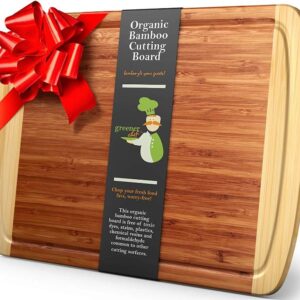 - NATURAL LOOK: This Bamboo kitchen cutting board has an attractive two-tone design that makes great gifts for Housewarming, Weddings, Christmas, Birthdays, Thanksgiving, Mother’s & Father’s Day, etc.