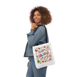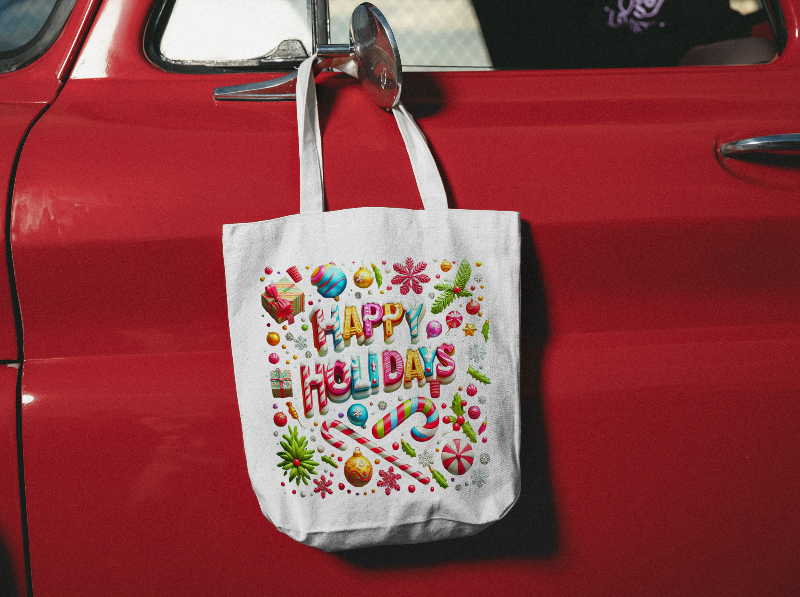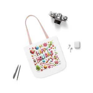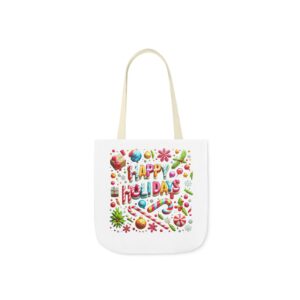 Celebrate the season with our Garden Holiday Tote Bag featuring the festive ‘Happy Holiday’ design. Made from durable 100% polyester canvas, this tote is perfect for carrying your essentials with style
