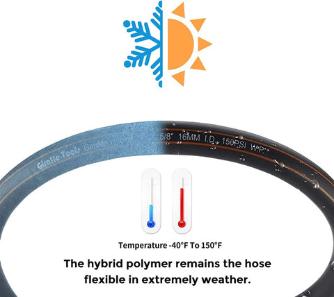 - DURABLE & LEAK PROOF: The hybrid material is more durable, abrasion-resistant, and has no memory. These types of materials allow the hose to work in extremely cold weather and remain flexible with a long lifespan. It is also graded for 150-200 PSI burst strength.