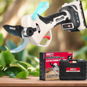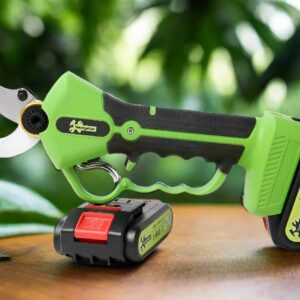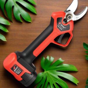 SHARP & SUPER-POWERED: The professional cordless pruning shears blade is forged from SK5 high carbon steel. This material is sharp, durable, and will easily cut 1″ to 1.38-inch branches. The pruner is powered by the latest version of the brushless motor which has a service life of 3 to 5 times longer than that of a conventional brush motor.