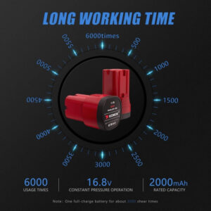 DURABLE & LONG WORKING TIME: A Rechargeable lithium battery with long battery life can help to continuously cut for about 4 hours after being fully charged. The approximate charging time is 1.5 hours. Most models come with a single battery and the spare ones can be purchased separately.