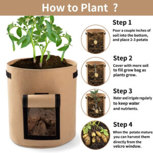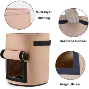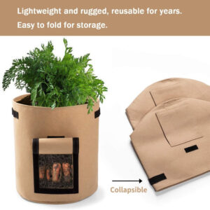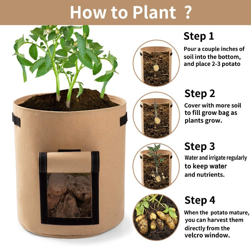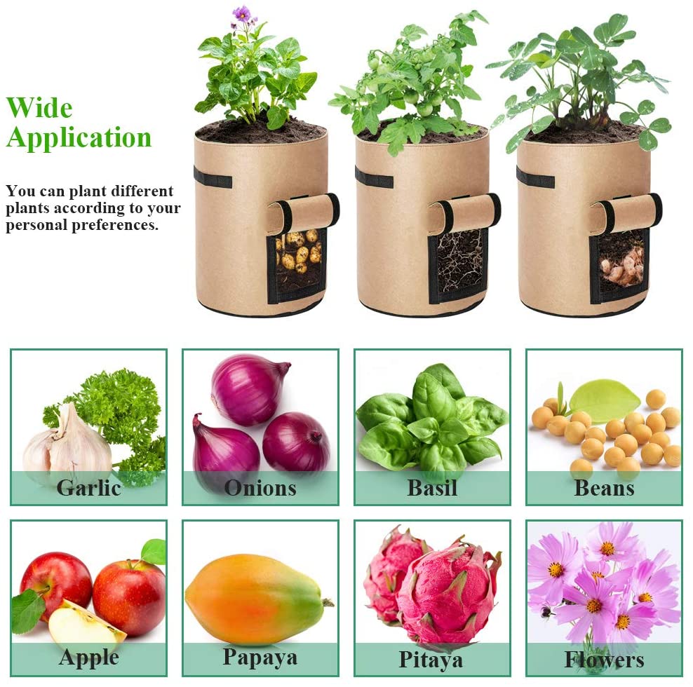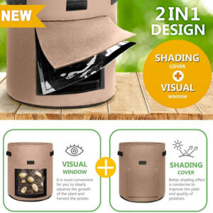- FLAP VELCRO WINDOW & HANDLES: Vegetable grow bags are designed with an access flap window for observing the growth of roots and easy harvesting. Harvest the mature potatoes and keep the immature ones continue to grow in the bag. With handles on both sides for easy moving. These garden planter bags are suitable for indoor and outdoor planting.