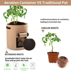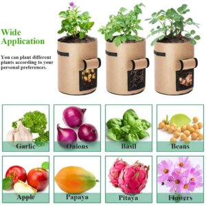- MULTIPURPOSE GROW BAGS: They are large and tall 7 Gallon (11.8″ x 14″ Diameter X Height) & 10 Gallon (13.8″ x 15.7″) plant grow bags, large space, and sufficient capacity, tall enough to allow the plant roots to grow deep and healthy. Ideal for most plants growing such as plant potato, onion, carrot, tomato, taro, radish, carrot, cucumber, aubergine, pepper, courgette, and flowers.