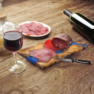 - EPOXY RESIN CHARCUTERIE BOARD: Nature meets art in these exquisitely carved beautiful cool charcuterie boards. Olive wood cheese board has been enriched with the beauty of resin design by applying a purple color river strip. These epoxy and wood cutting boards are handmade from sustainably sourced olivewood and accented with resin by using traditional methods.