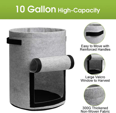- LARGE CAPACITY: These vegetable grow bags with a large capacity of 10 gallons allow you to grow veggies as much as you want. Thanks to the large size, it will create a stable growing environment for veggies and flowers.