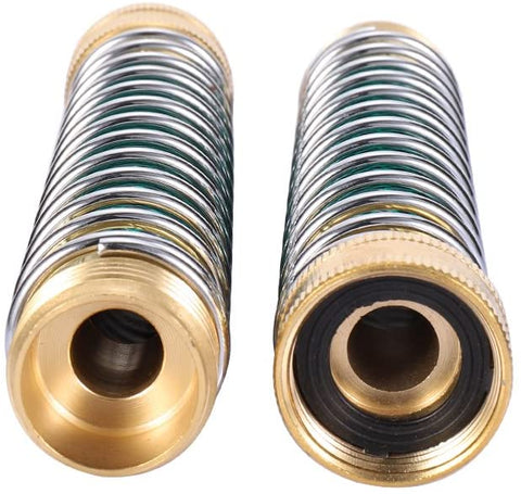 - UNIVERSAL SIZE: Heavy-duty brass construction, ends 3/4″ thread connection. The package includes 2 pack hose protector guards and their length is about 5.7″-5.9″.