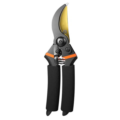 - Premium durable and comfortable pruners are a must-have for any gardener. All of our pruning shears adopt high-quality materials and strict quality control. The blades made with Ultra-fine Polishing Technology and Teflon or Titanium coating, are very sharp and prevent tree pulp adhesion caused by rust on the blades. Handle material is high-quality aluminum wrapped with a layer of PVC, which is very soft and comfortable to use.