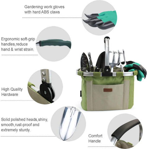 - HEAVY-DUTY GARDEN TOOLS SET: Made from top-quality anti-rust Aluminum. Solid polished heads, shiny, smooth, rust-proof, and extremely sturdy. Ergonomic soft-grip handles, reduce hand and wrist strain. Hanging holes for clutter-free storage.