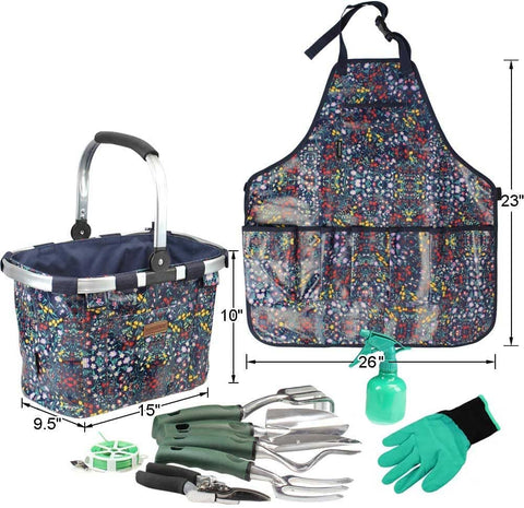 - EXTRA GARDENING APRON: The Garden tools kit also comes with a garden tool apron. The tools can be put into the pouches when in use, and the top is laminated with waterproof clear TPE, to avoid moisture and dirt on your clothes.