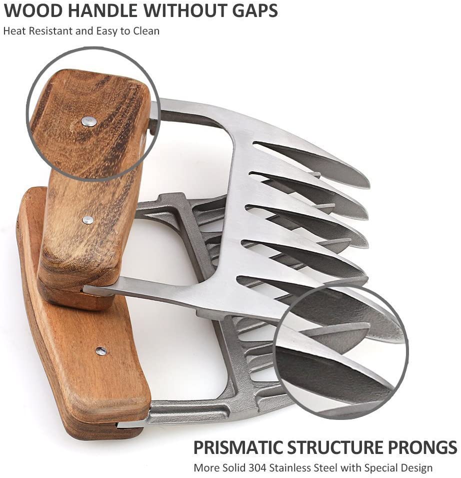 - HAND-CRAFTED THICK WOODEN HANDLES: Pulled pork claws with durable wooden handles and not hollowed out making them easier to grip and clean (as nothing really stuck to them).
