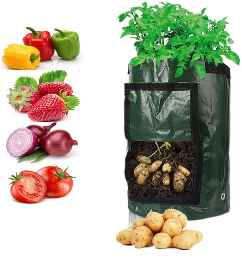 - STRONGER FABRIC MATERIAL: Made out of thickened PE & Anti-UV fabric material these vegetable grow bags are strong and durable enough to last for years under sunlight. Suitable for both indoors and outdoors, ideal for planting potato, onion, peanut, beet, radish, ginger, garlic, and more.